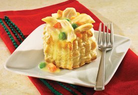 Convenient products like puff pastry shells, frozen vegetables and cream of mushroom soup allow you to whip-up mouthwatering, individual pot pies in less than an hour. These Weeknight Turkey Pot Pies are an easy dinner when things get hectic. Everyone needs some nice and easy turkey pot pie recipes in their collection and this one from Campbell's Kitchen is one of the best!