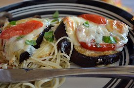 Finally, a simple eggplant recipe without a lot of gooey sauce on it, making it hard to find and enjoy the vegetable. This is just great and an easy recipe for a small family.