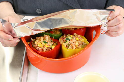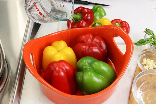 The peppers can also be precooked by placing them in a steamer basket over boiling water and cooking for 4 minutes.