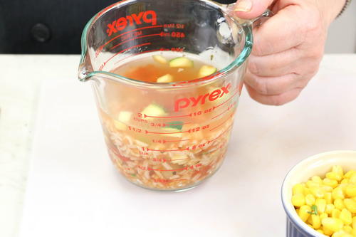 If using frozen corn, remove from freezer and place in a wire sieve. Run cool water over the corn to thaw it, then dry on paper towels before using in the recipe.